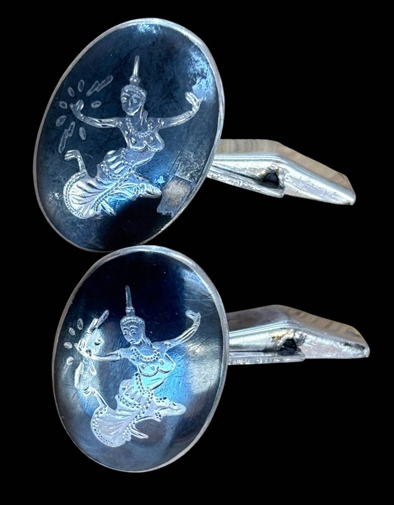 Paar Manschetten-Knöpfe, 925er Silber "Sterling" Siam, 14,8 gr.