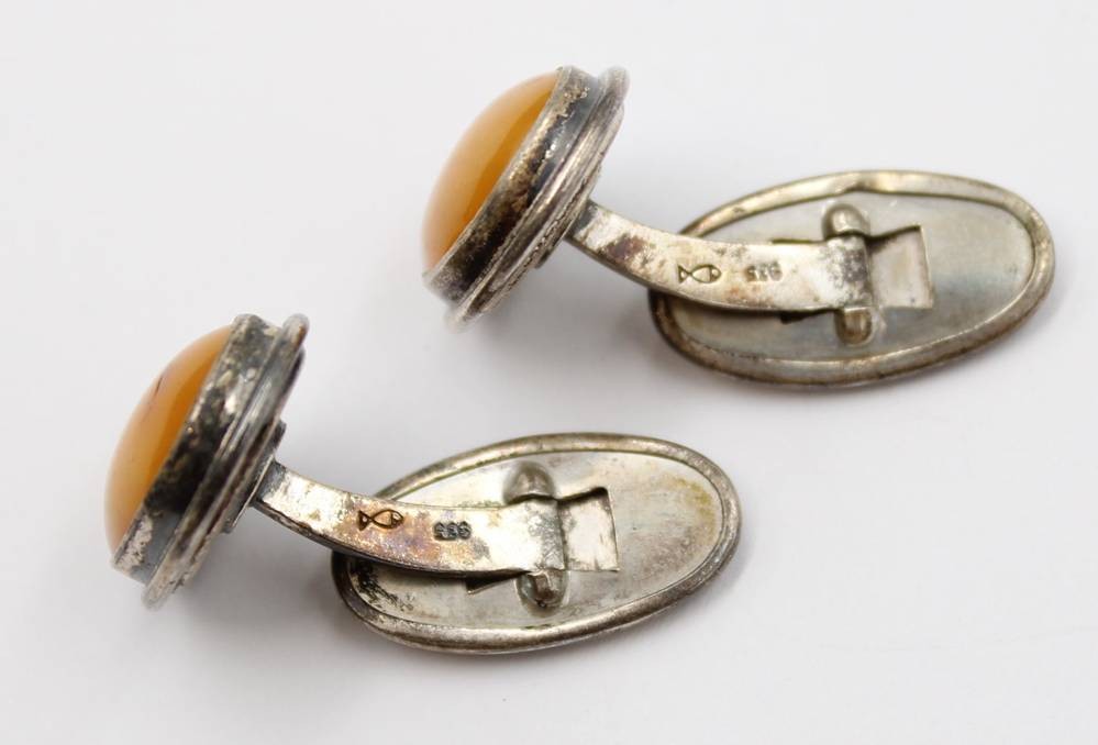 Paar Manschettenknöpfe, 835er Silber m. Bernstein, Fischland, zus. ca. 10,1gr., ca. 2cm [1]