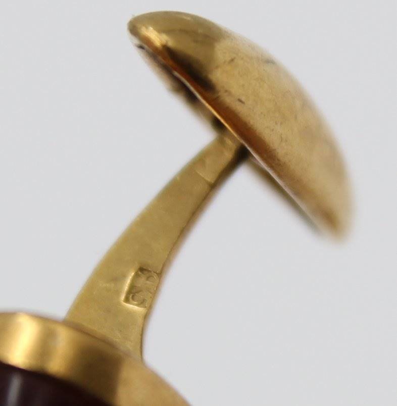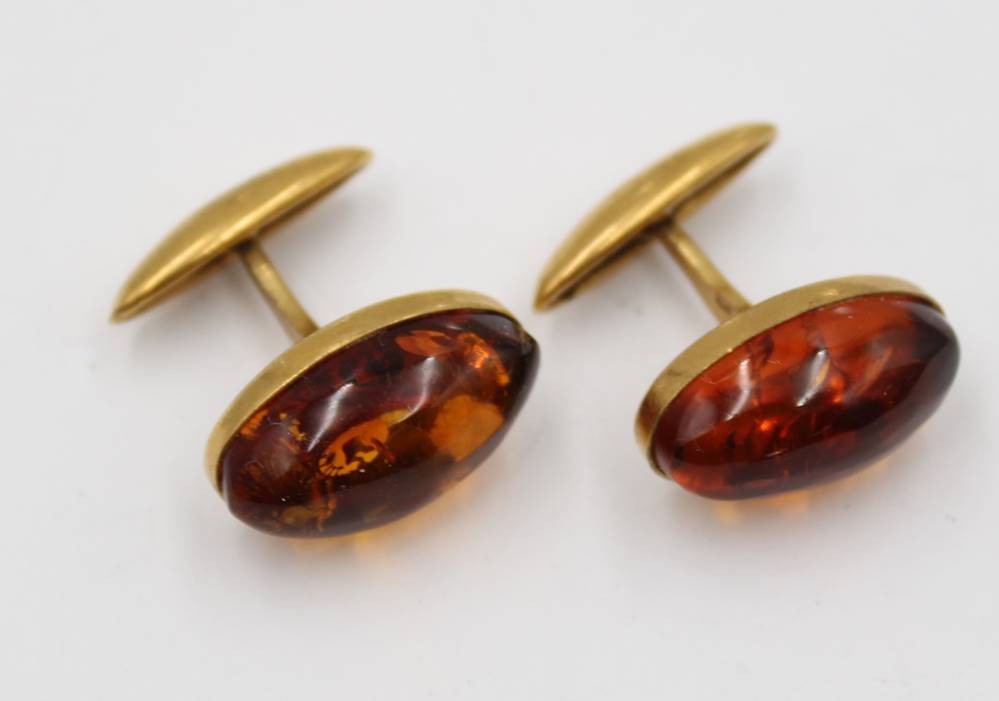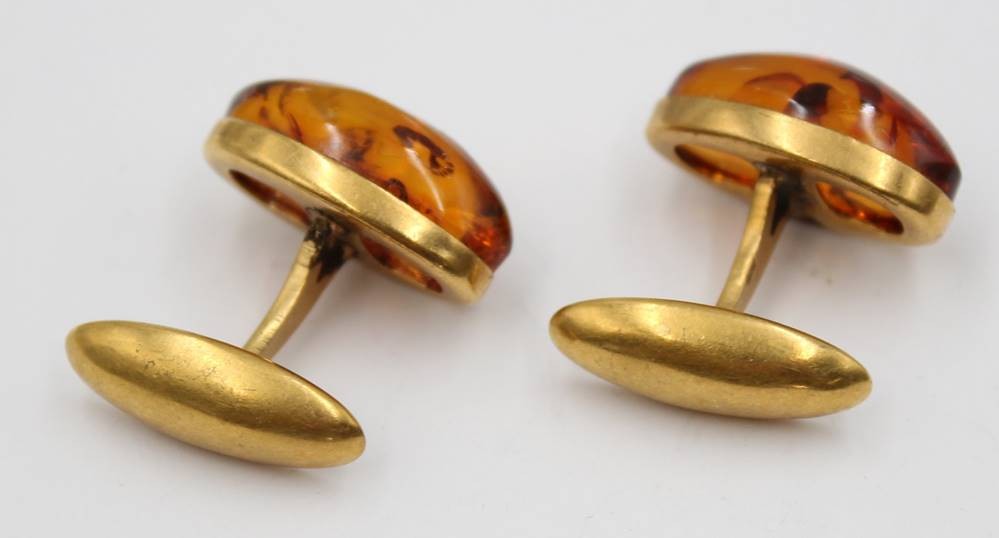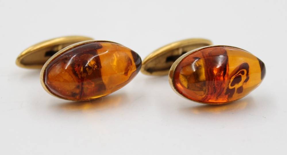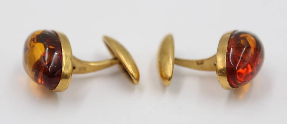 Paar Manschettenknöpfe mit Bernstein, Doublé, ca. 2cm [1]