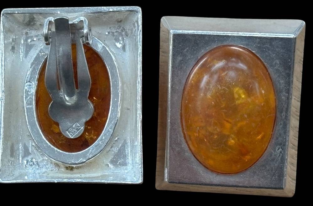 Paar massive Silber-925- Ohrclips, pass. zu vorigem Collier, 2,5x2 cm, zus. 12,9 gr., div. ungedeut. Punzen? [1]