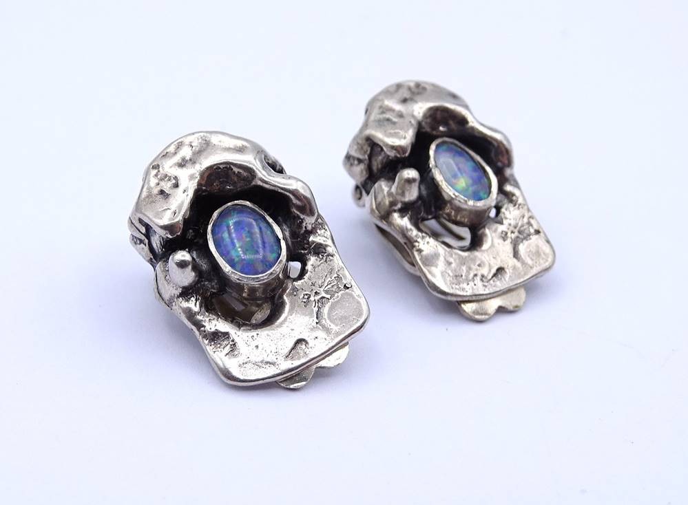 Paar Ohrclips mit Opale, Silber 835/000, L. 2,2cm, zus. 13,7g. [1]