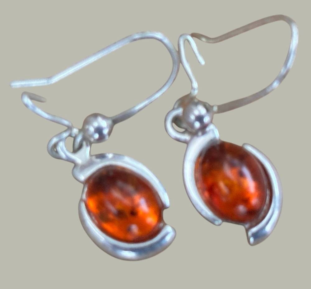 Paar Ohrhänger mit Bernstein, Silber-925-, 3 gr.