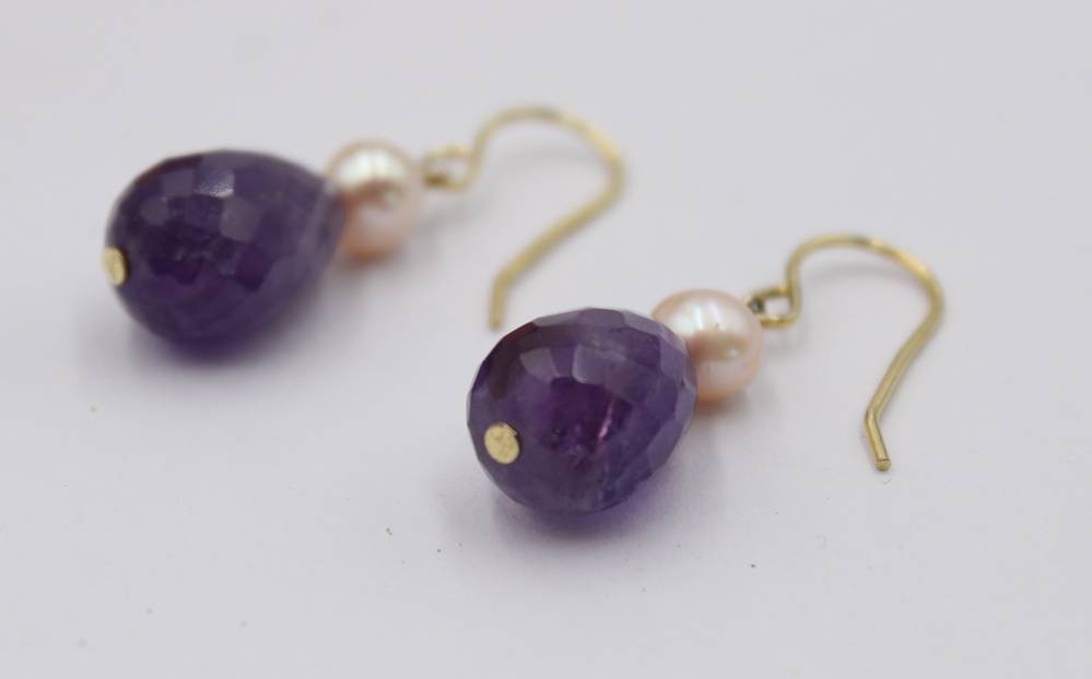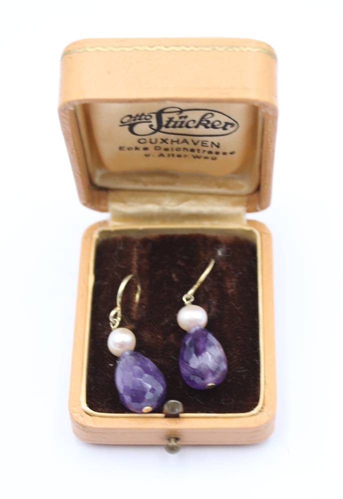 Paar Ohrhänger mit Perle und Amethyst, ca. L-3,5cm