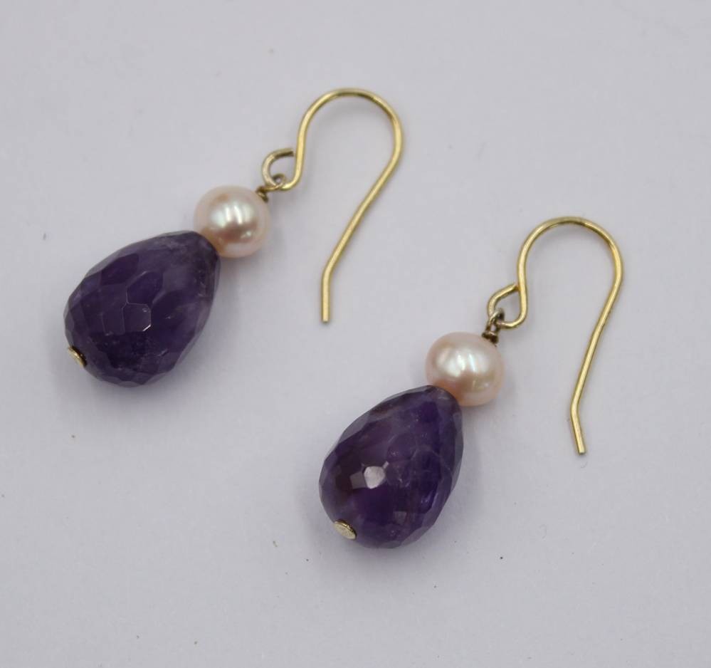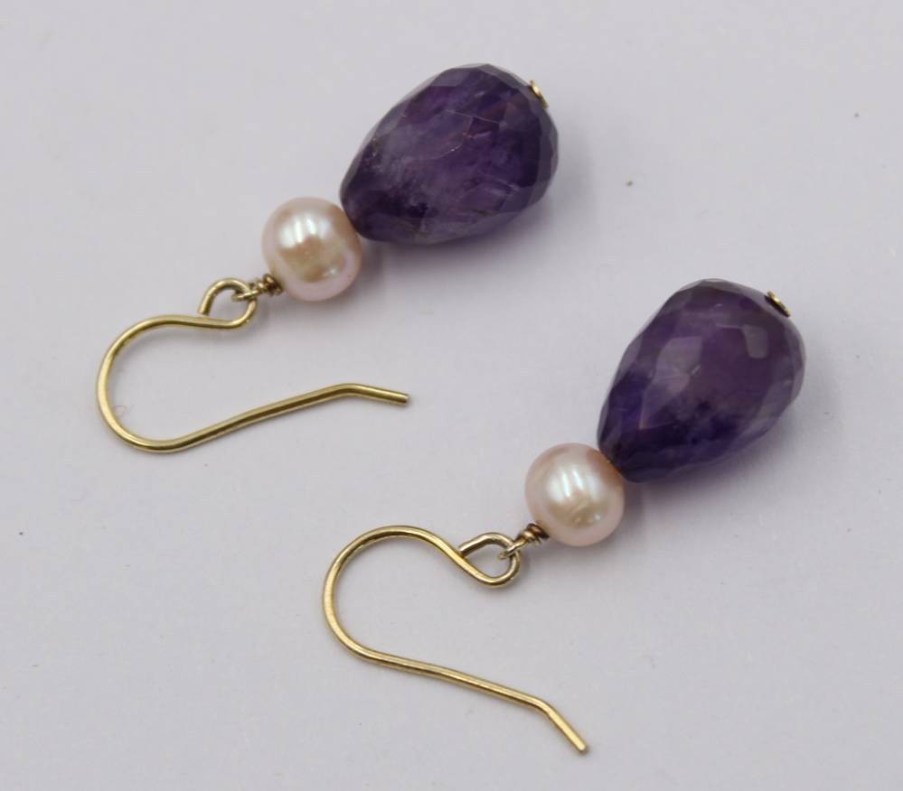 Paar Ohrhänger mit Perle und Amethyst, ca. L-3,5cm [1]