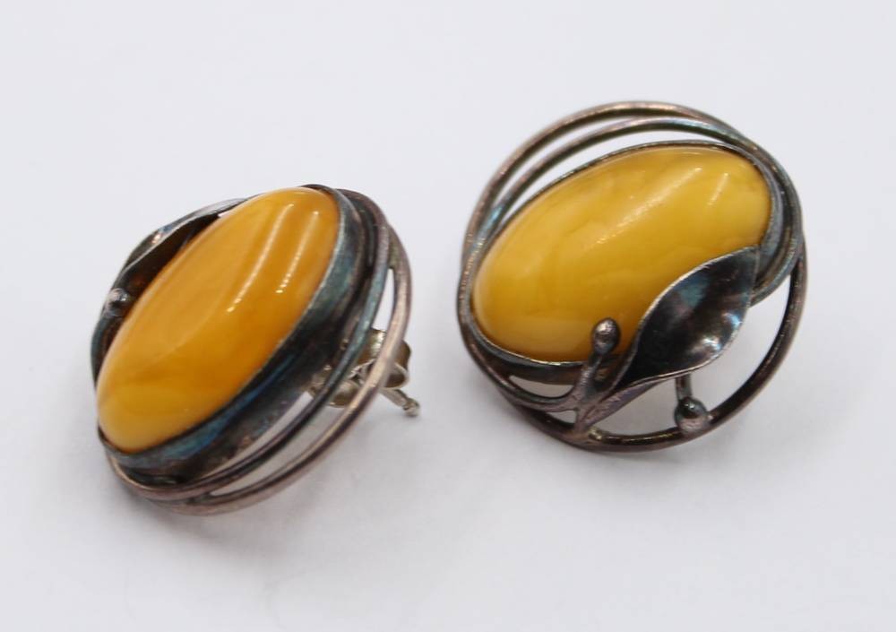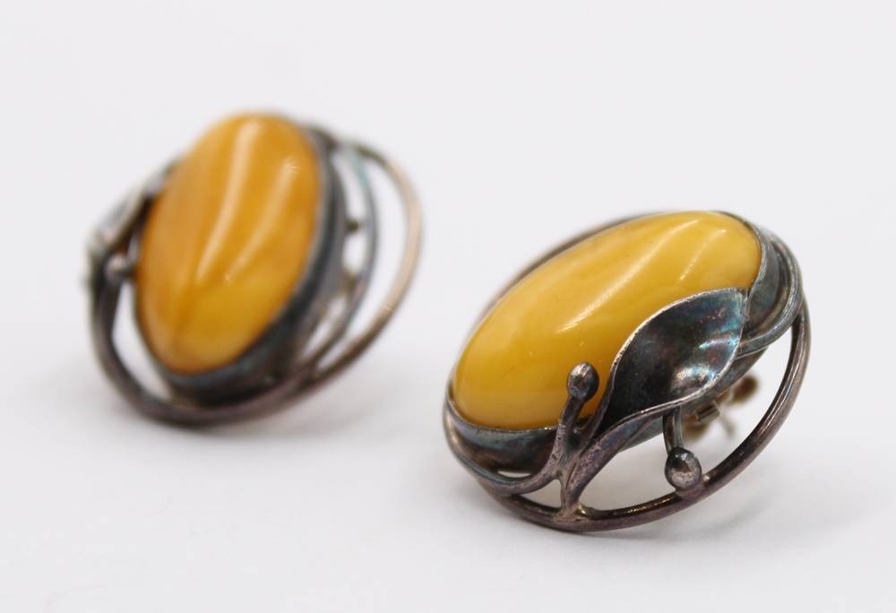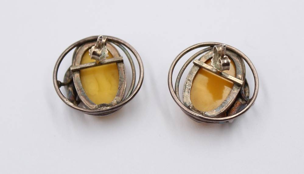 Paar Ohrstecker, 925er Silber mit Bernstein, zus. 9,3gr., ca. L-2,3 cm, [1]