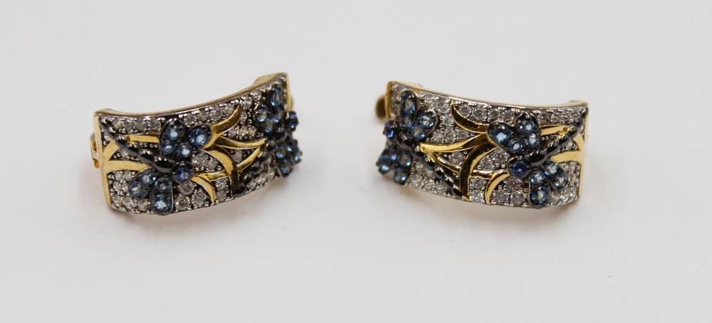 Paar Ohrstecker, 925er Silber vergoldet, Farbsteinbesatz, zus. ca. 4,4gr., L-1,8cm [1]