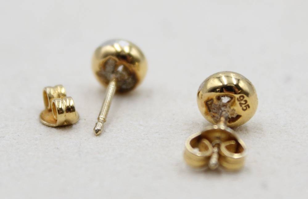 Paar Ohrstecker, 925er Silber vergoldet, klare Steine, 2,5gr., ca. D-0,7cm [1]