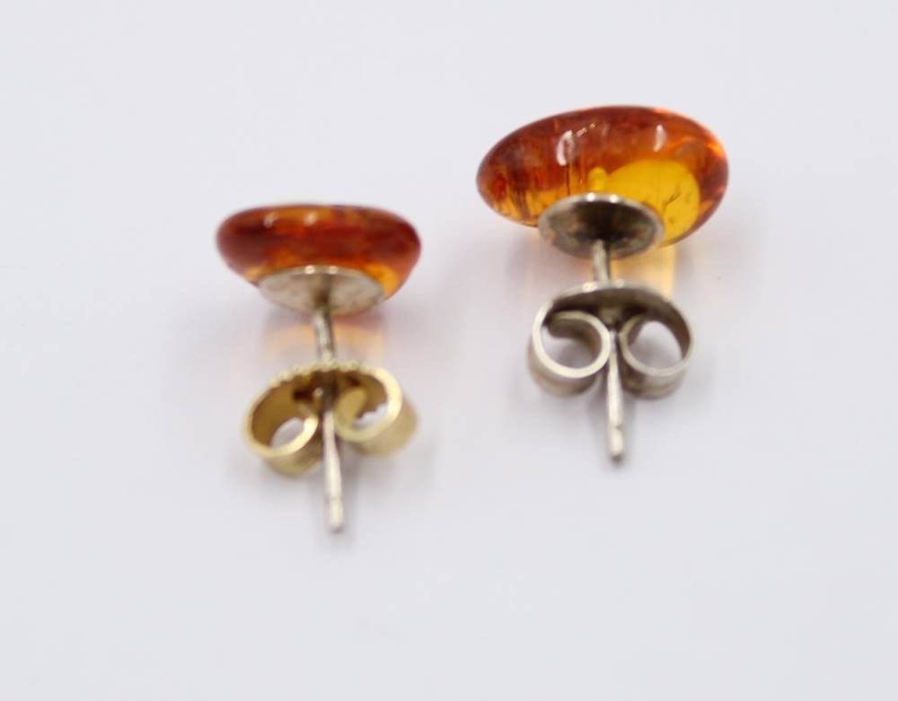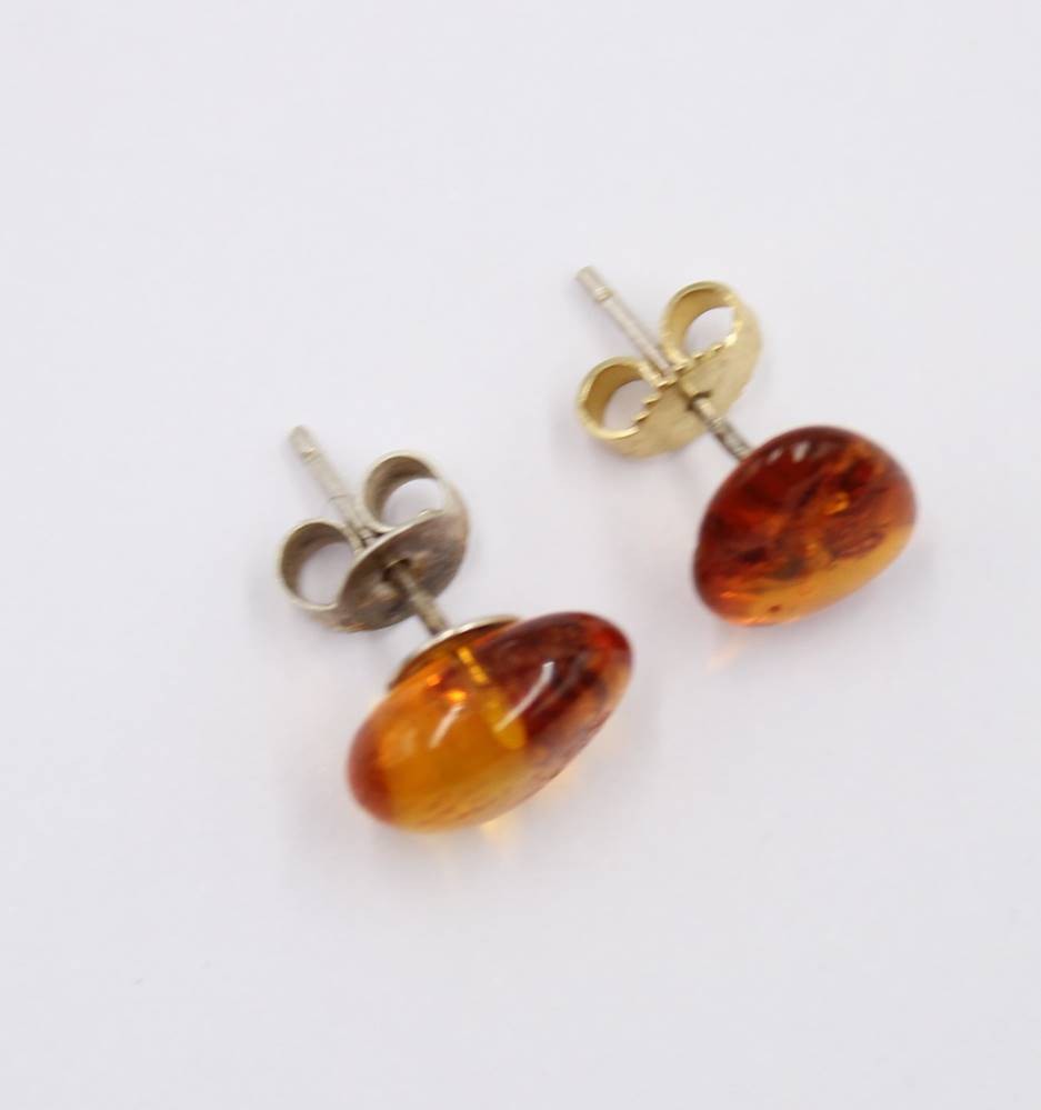 Paar Ohrstecker mit Bernstein, wohl Silbermontur, 0,9gr., D-0,8cm [1]
