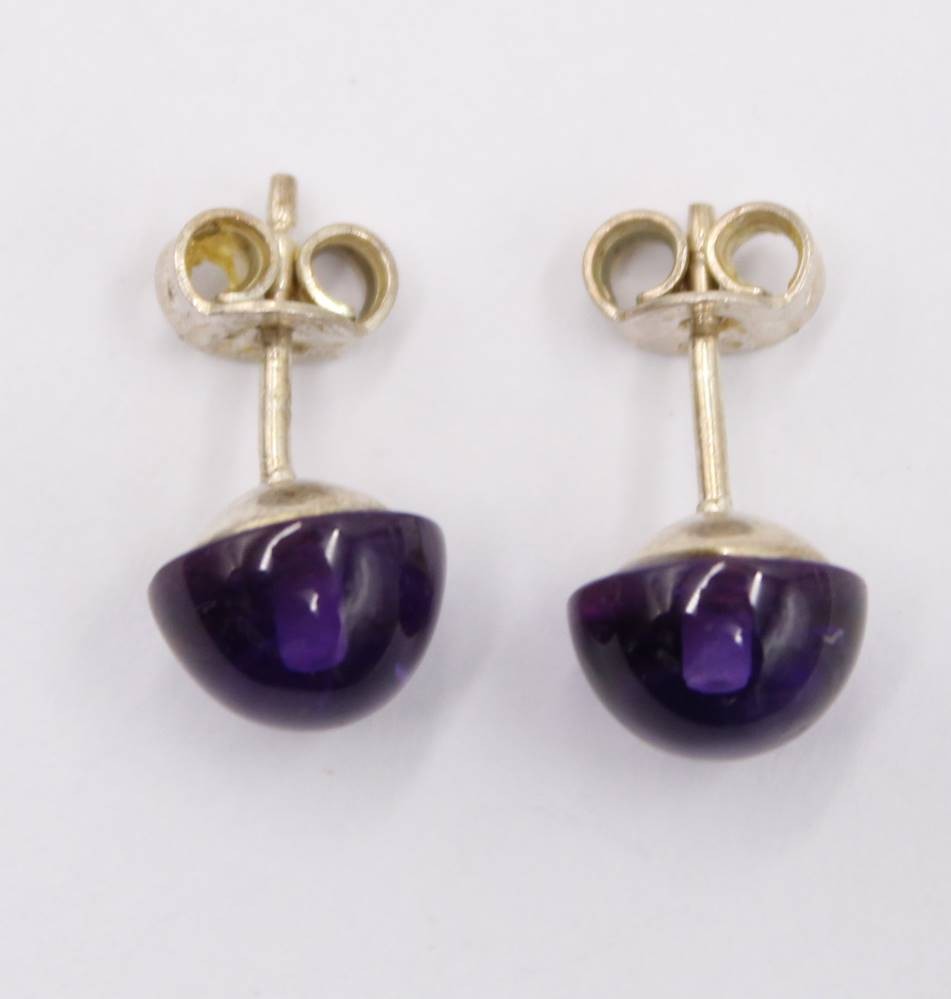 Paar Ohrstecker mit lila Steinen, Silbermontur, ca. D-0,8cm [1]