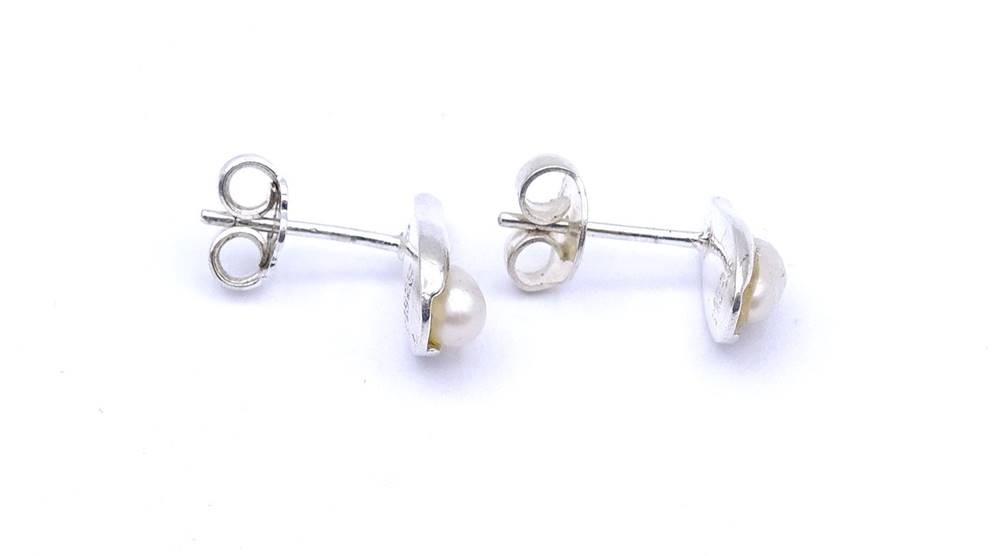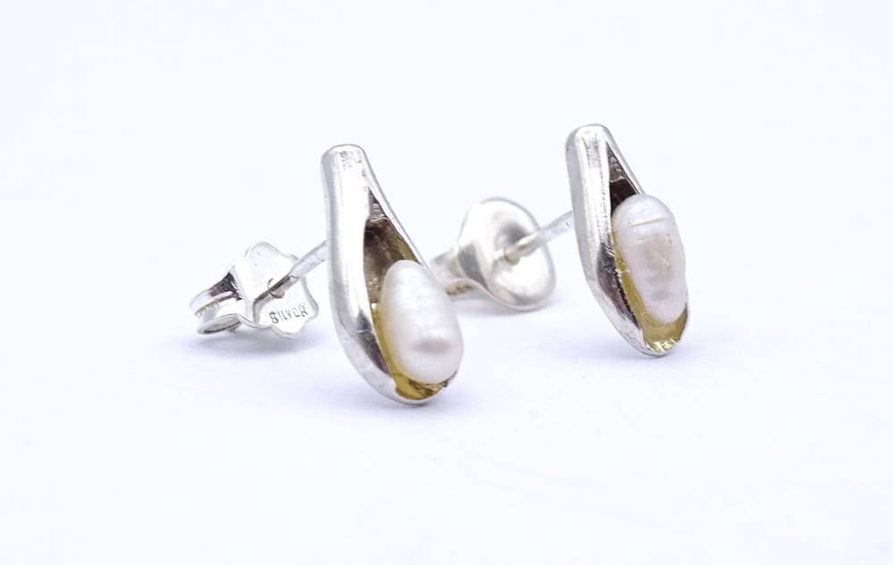 Paar Ohrstecker mit Süßwasserperlen, Silber, bez. Silver, zus. 1,6g., L. 1,2cm [1]