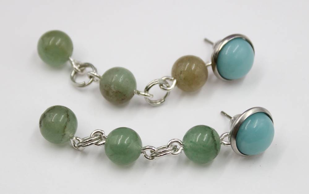 Paar Ohrstecker, mit Türkis und Jade?, ca. L-5cm [1]