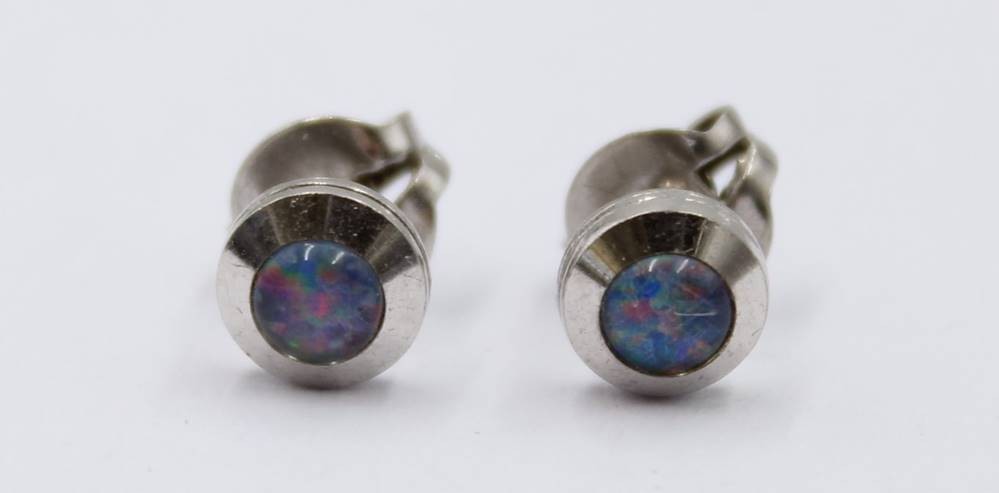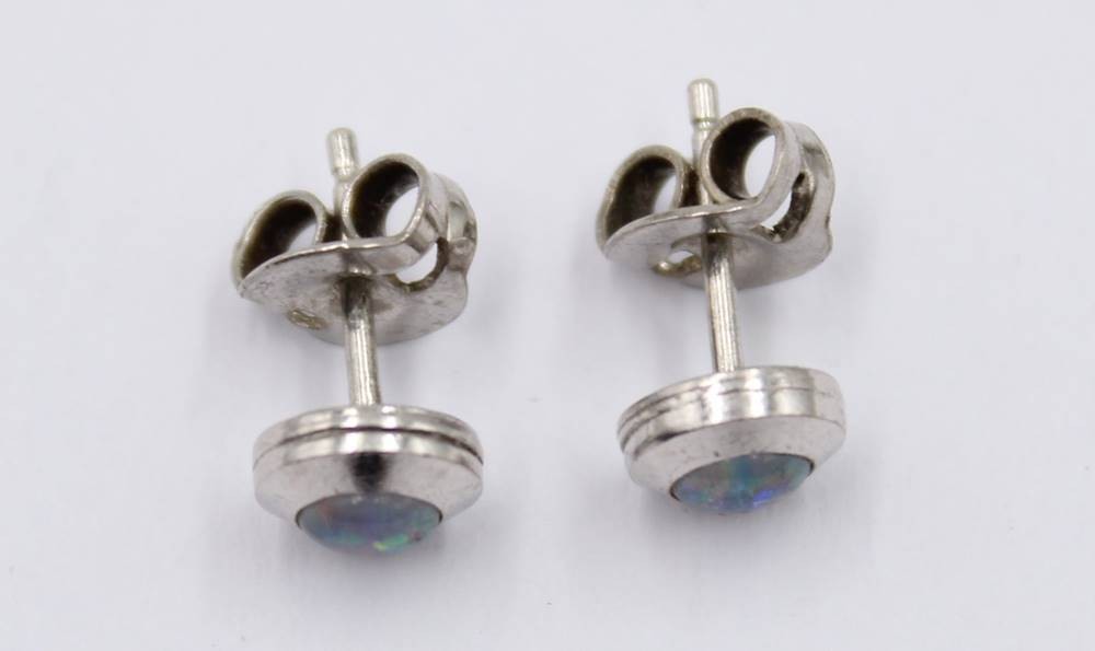 Paar Ohrstecker, Silber mit Opalen, 1gr., ca. D-0,7cm