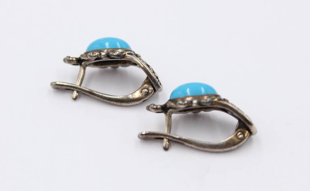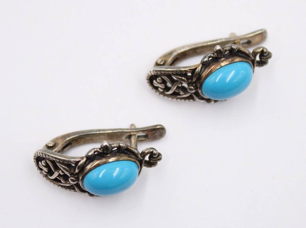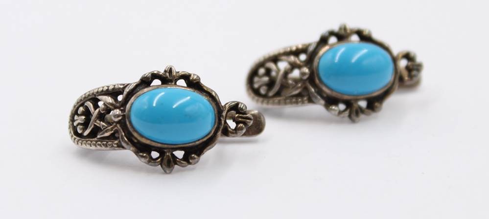Paar Ohrstecker, Silber, mit Türkis, 5,1gr., L-2cm [1]