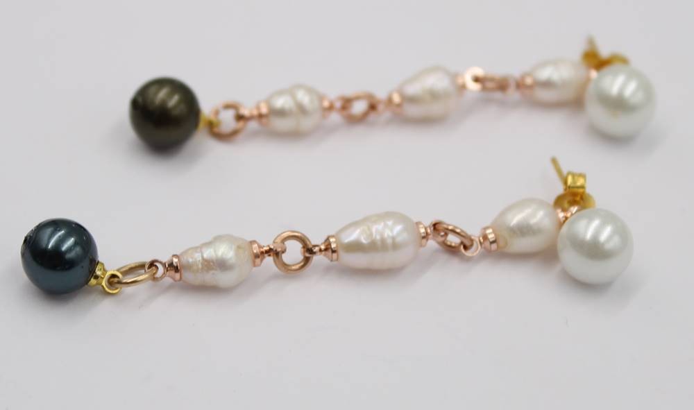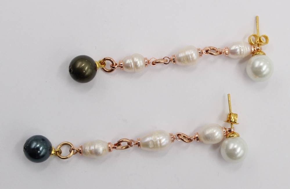 Paar Perl-Ohrstecker, SW-Perlen, goldfarben, L-6,3cm