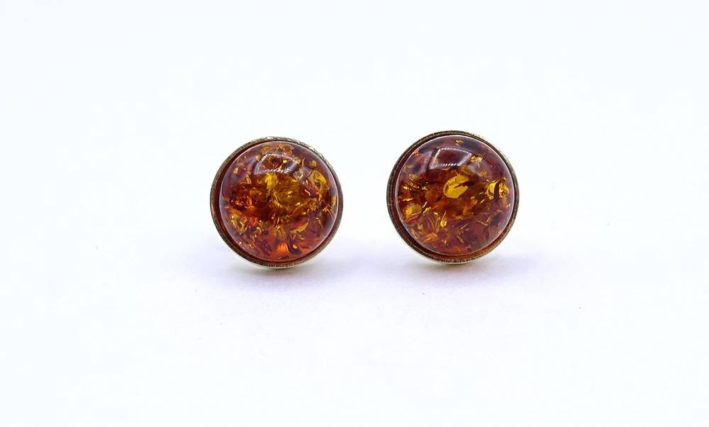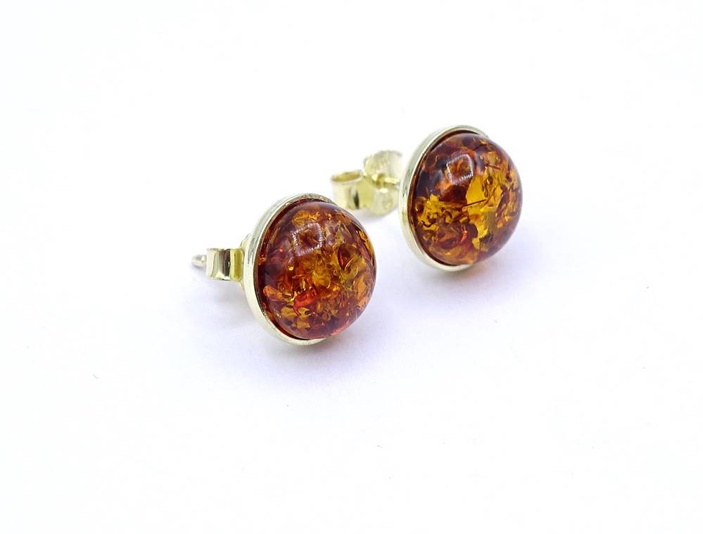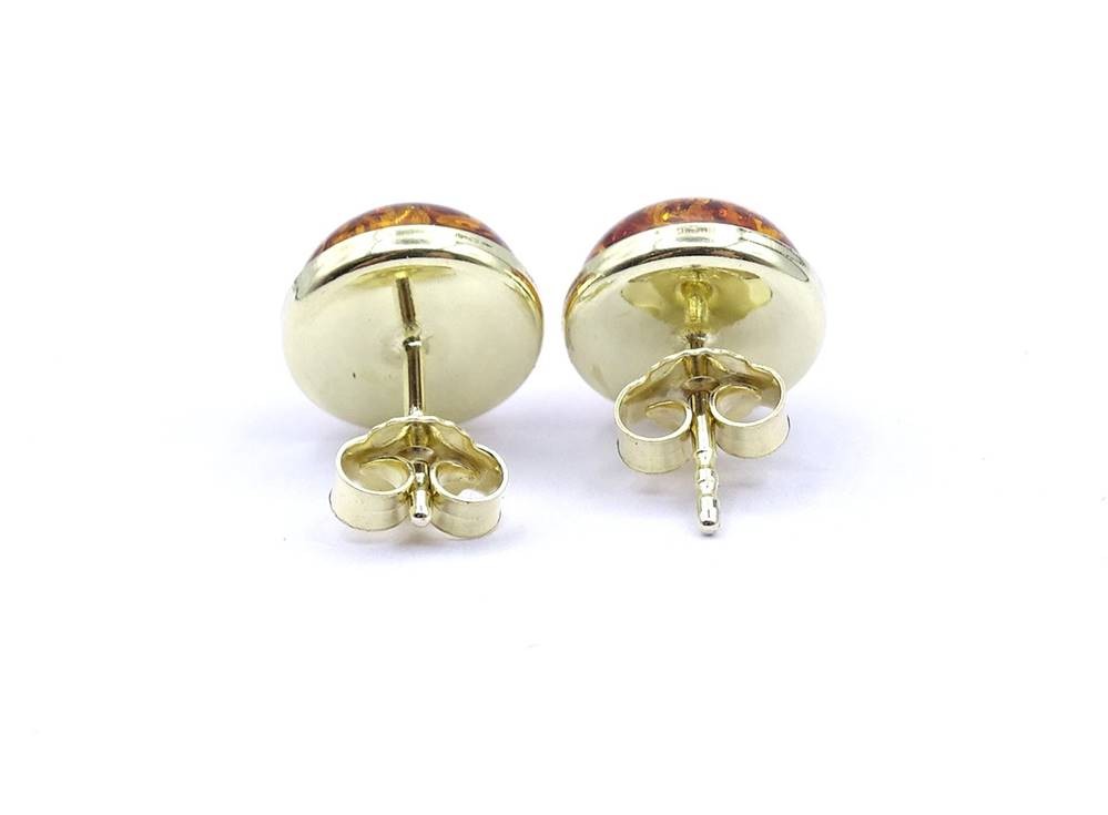 Paar runde Bernstein Ohrstecker, Silber 925/000 - vergoldet, D. 10,8mm, 2,2g. [1]