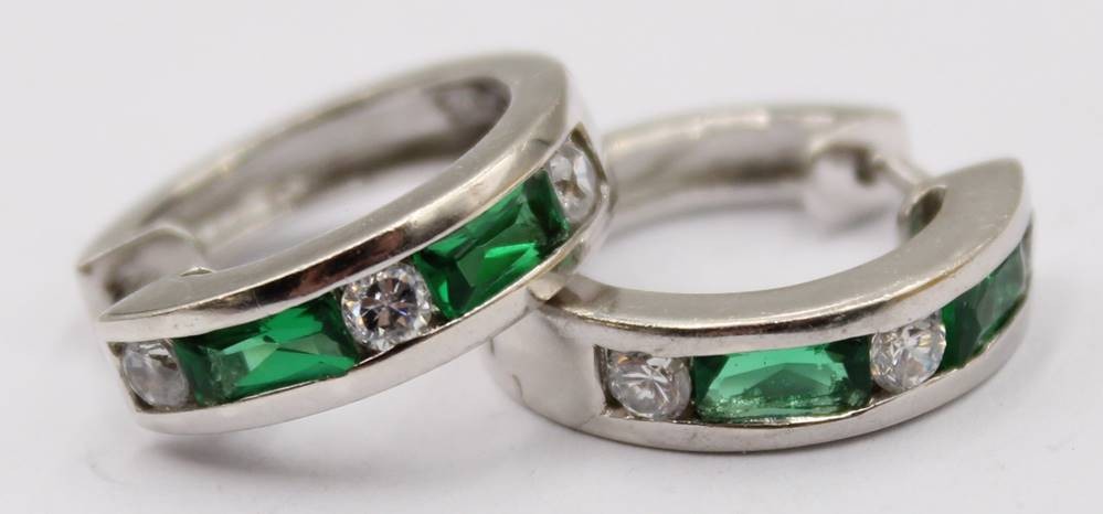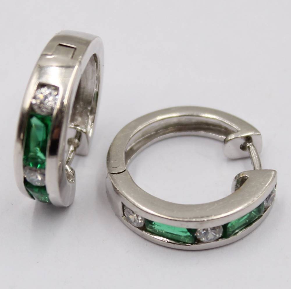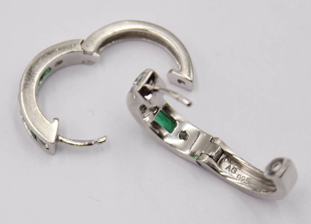 Paar runde Ohrringe mit grünen und weißen Steinen, 925er Silber, D.2,0 cm, 7 Gramm