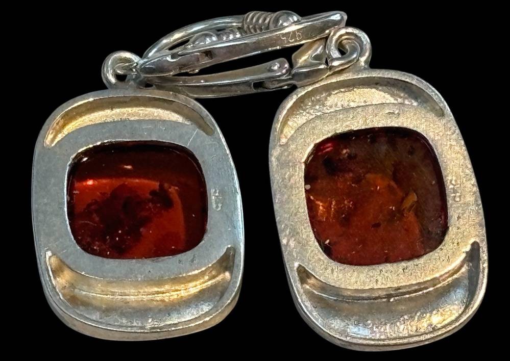 Paar Silber-925- Ohrhänger mit Bernstein, L-4 cm, 7,4 gr. [1]