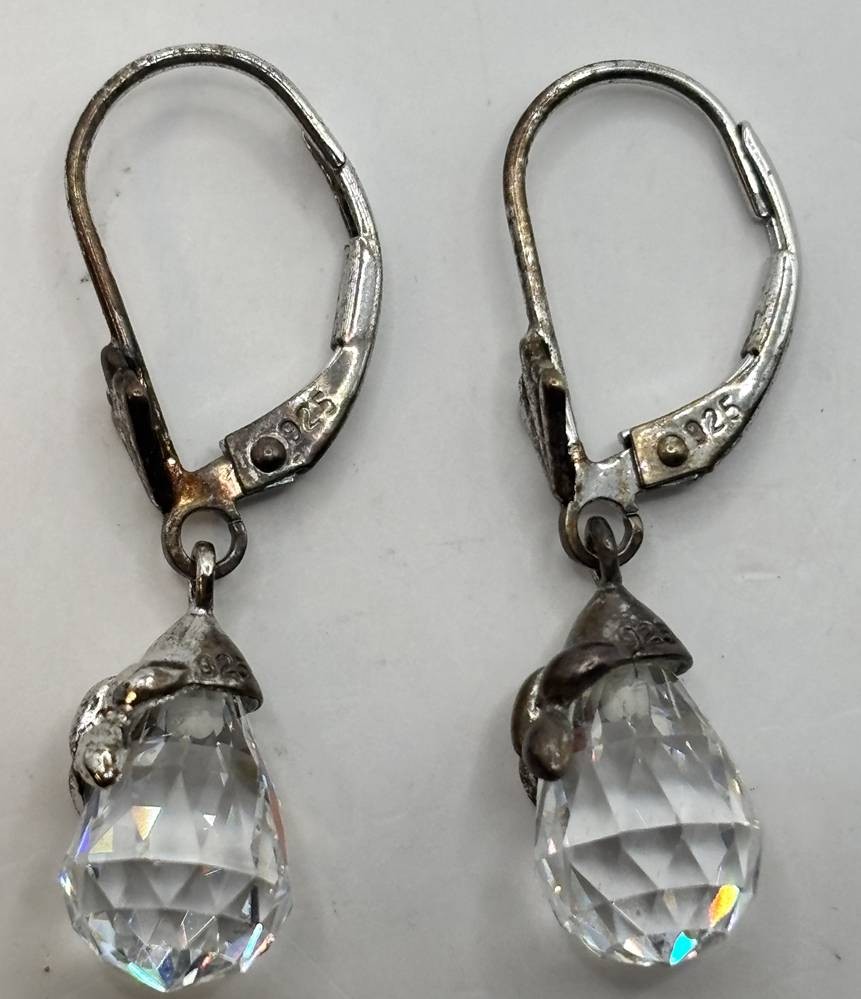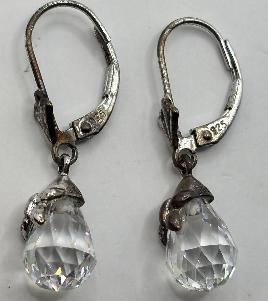 Paar Silber -925- Ohrhänger mit Kristall? Tropfen, H-3 cm, 5,8 gr [1]