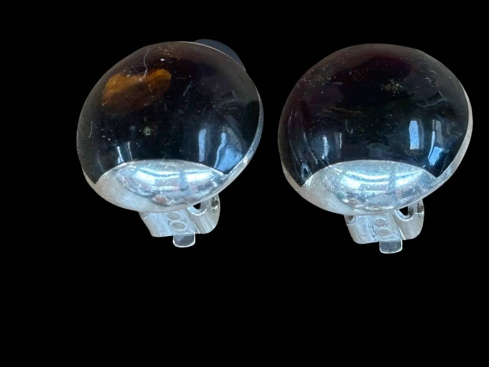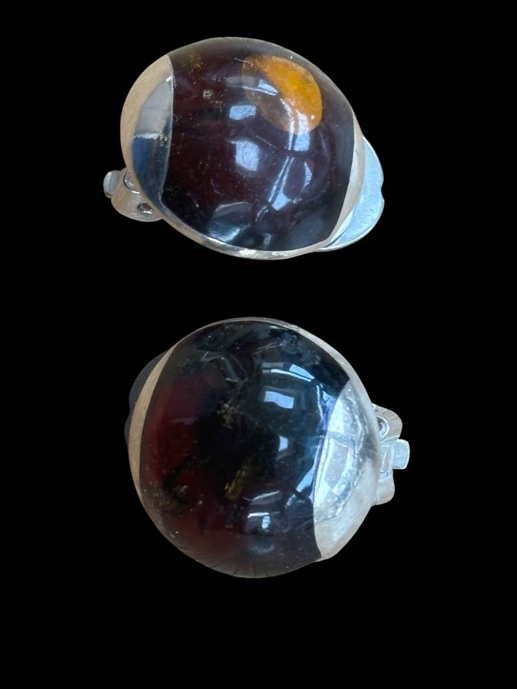 Paar Silber Ohrclips mit Bernstein, 6,3 gr, H-1,6 cm [1]