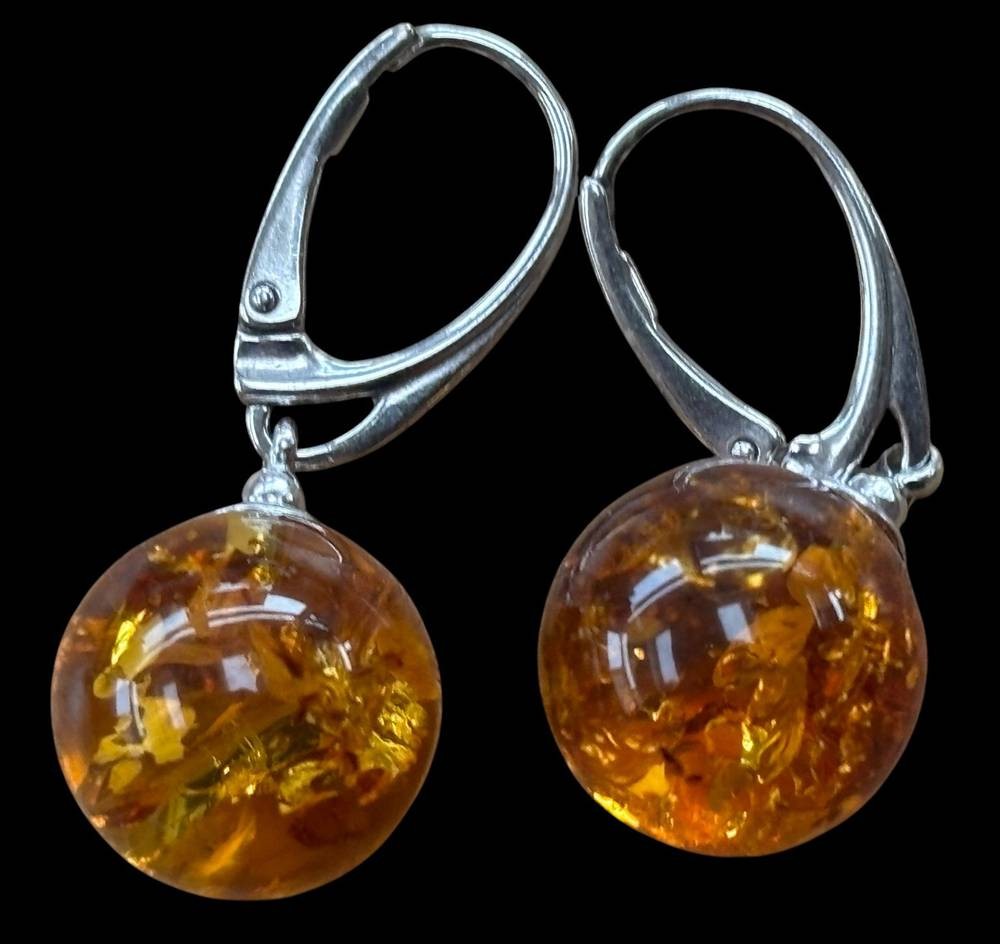 Paar Silber Ohrhänger mit Bernstein-Kugeln, H-ca. 3,2 cm, 4,6 gr.