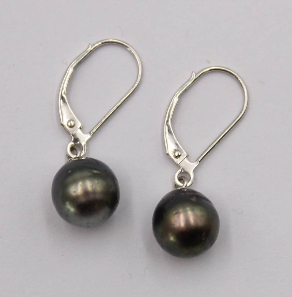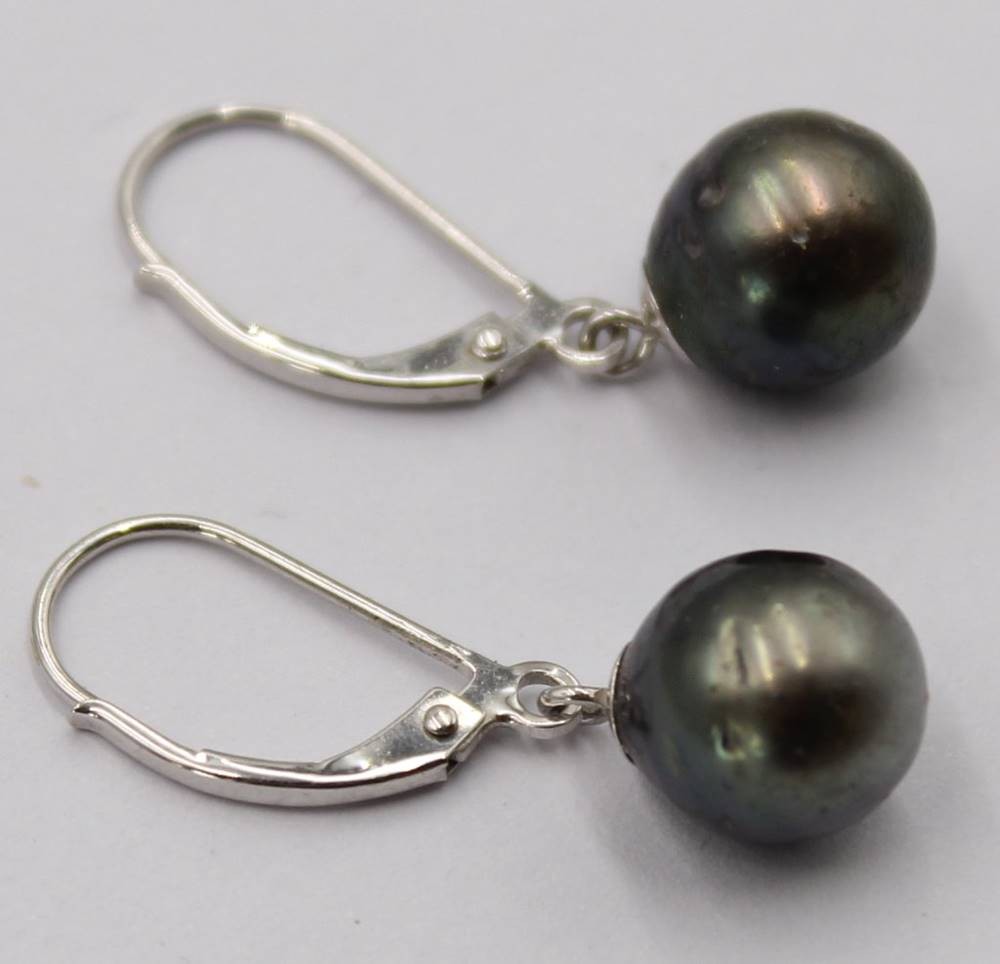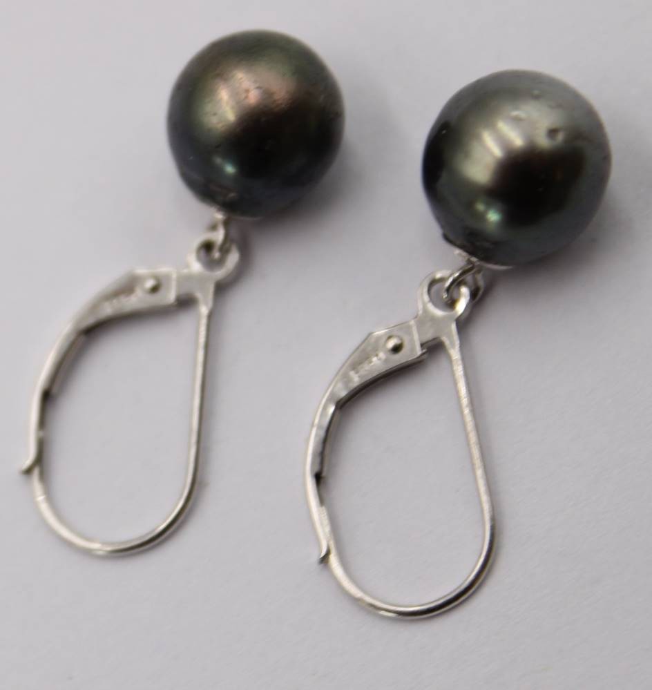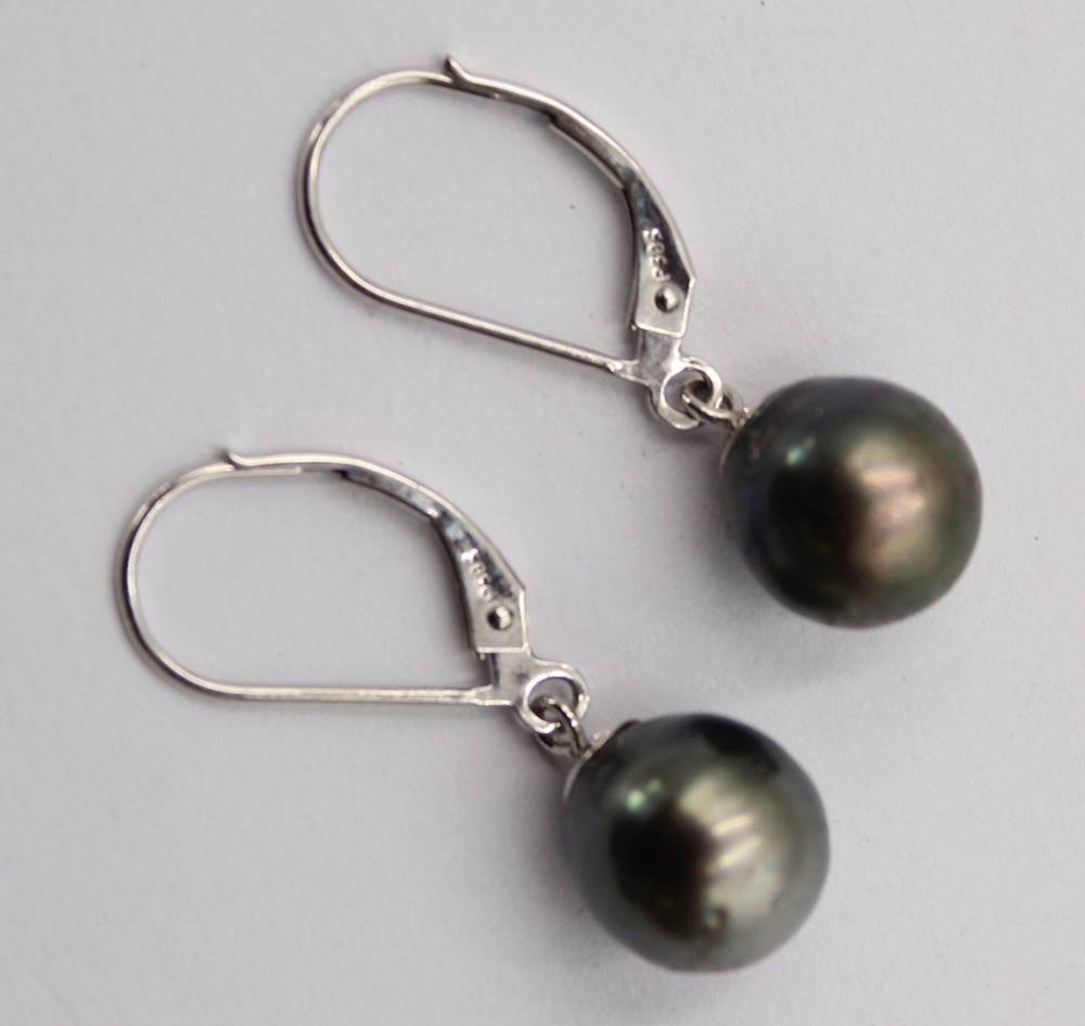 Paar Tahiti Perlen Ohrringe aus Weißgold 585, L. 3 cm, 2,7 Gramm, D. 0,9 cm [1]