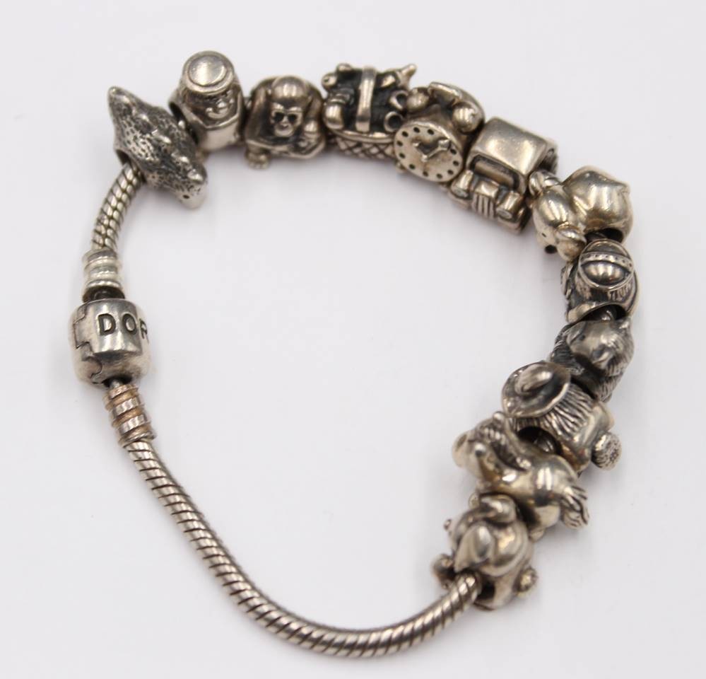 Pandora-Armband mit 12 div. Charms, 925er Silber, 58,6gr., ca. L-18cm [1]