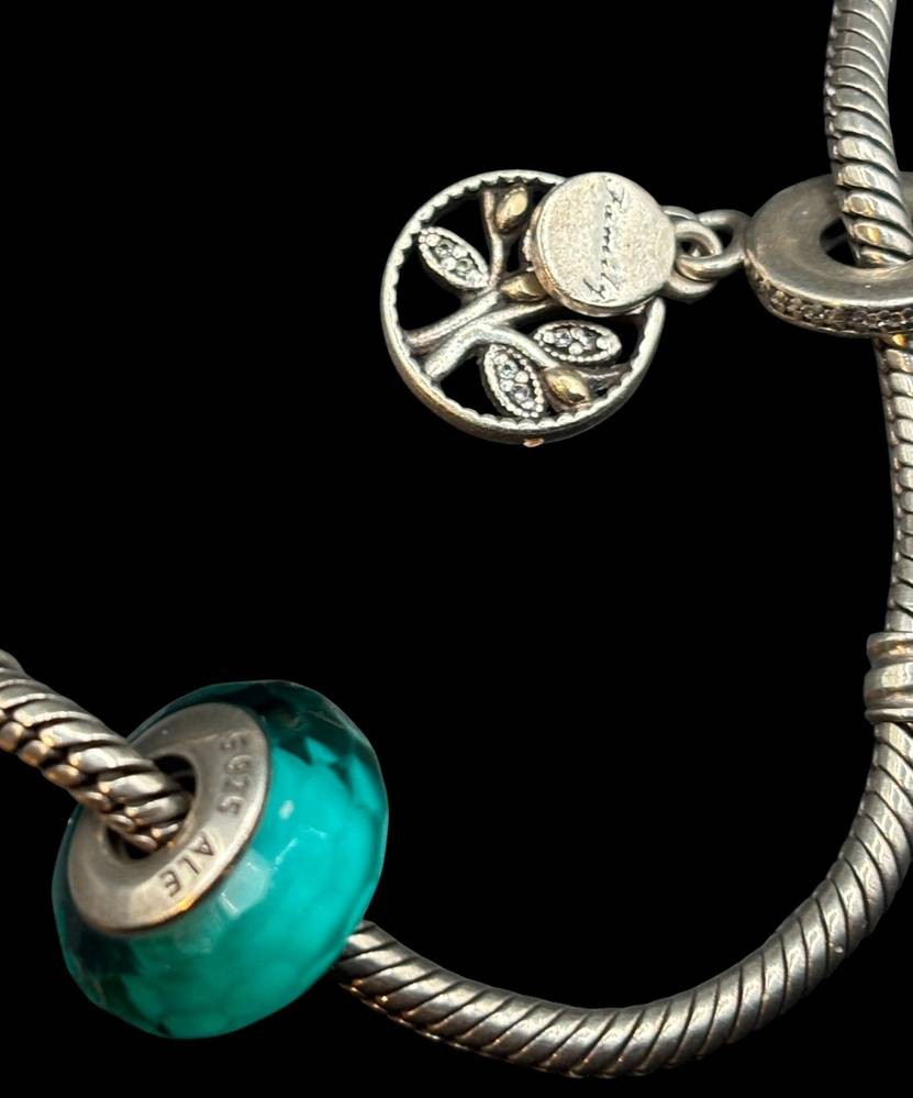 Pandora Armband mitr 2 orig. Charms, alles Silber-925-, anbei 7 Charms von anderen Herstellern, wohl alle kein Silber [1]