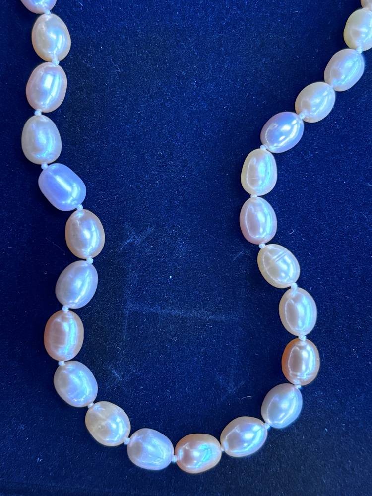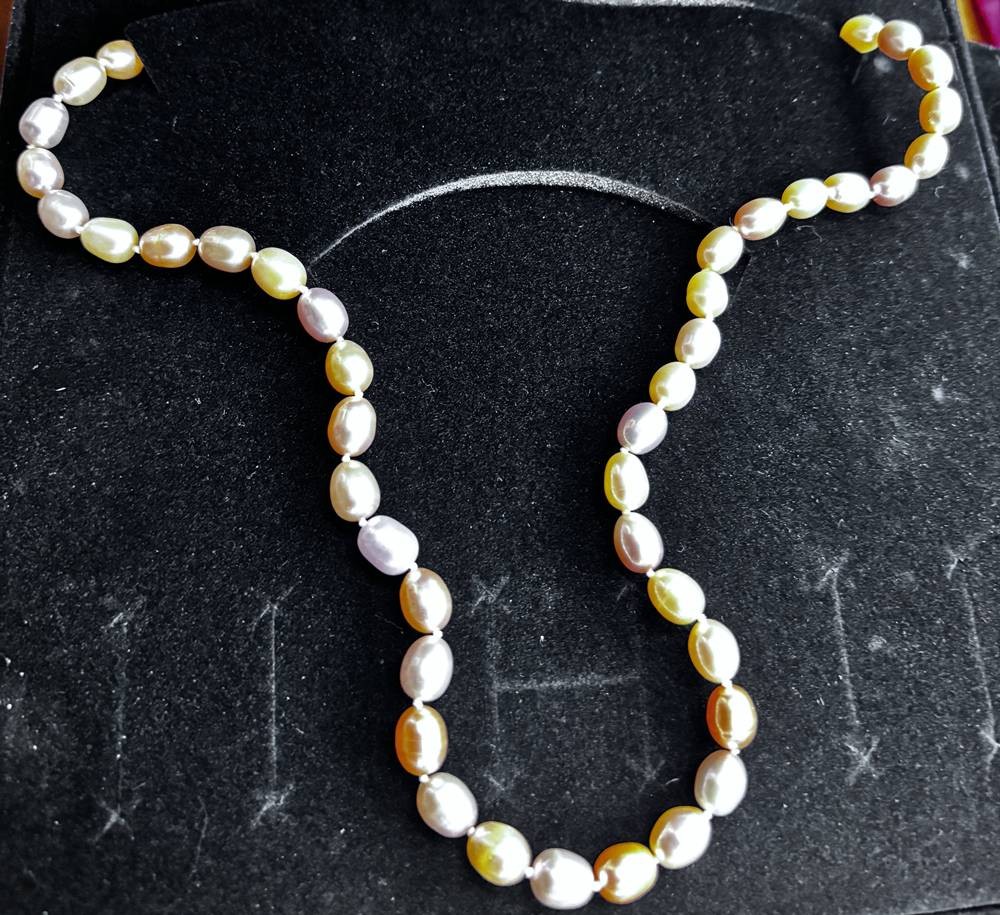 Perlenkette, leicht getönt, Magnetschliesse, L-48 cm, ungetragen im Kasten [1]