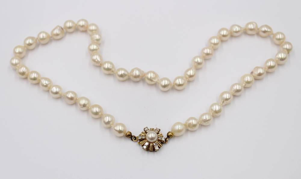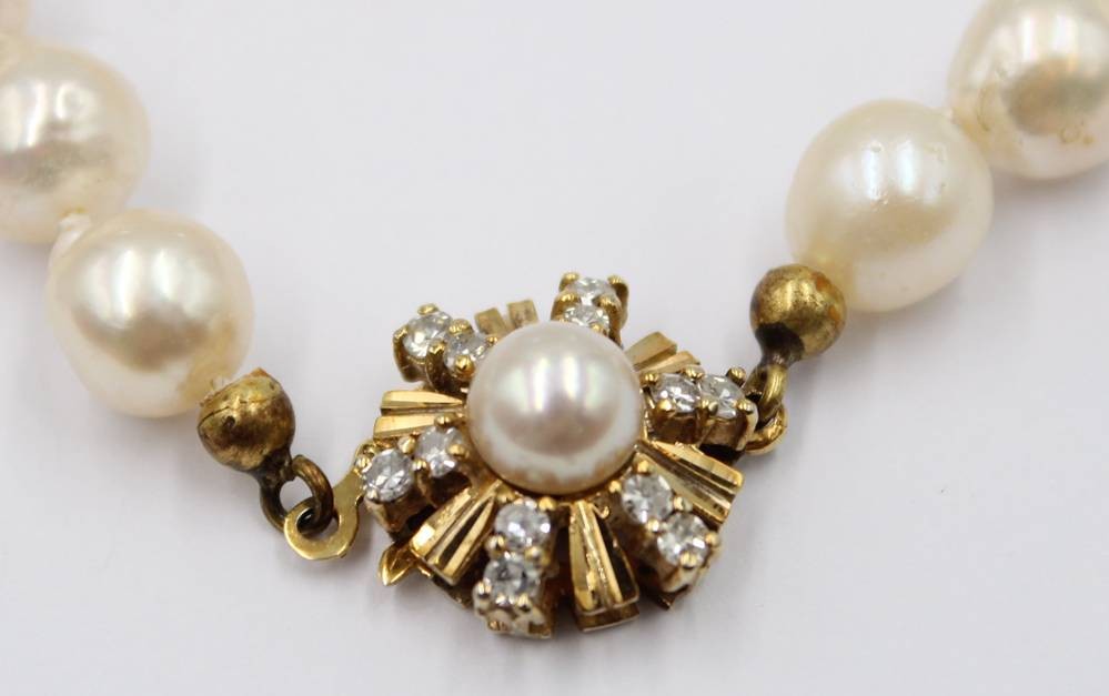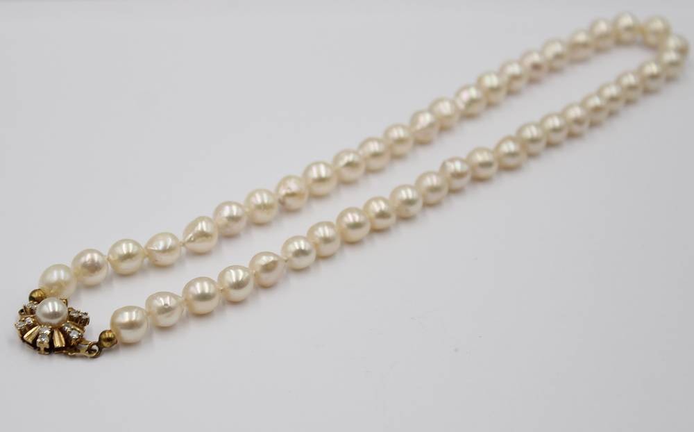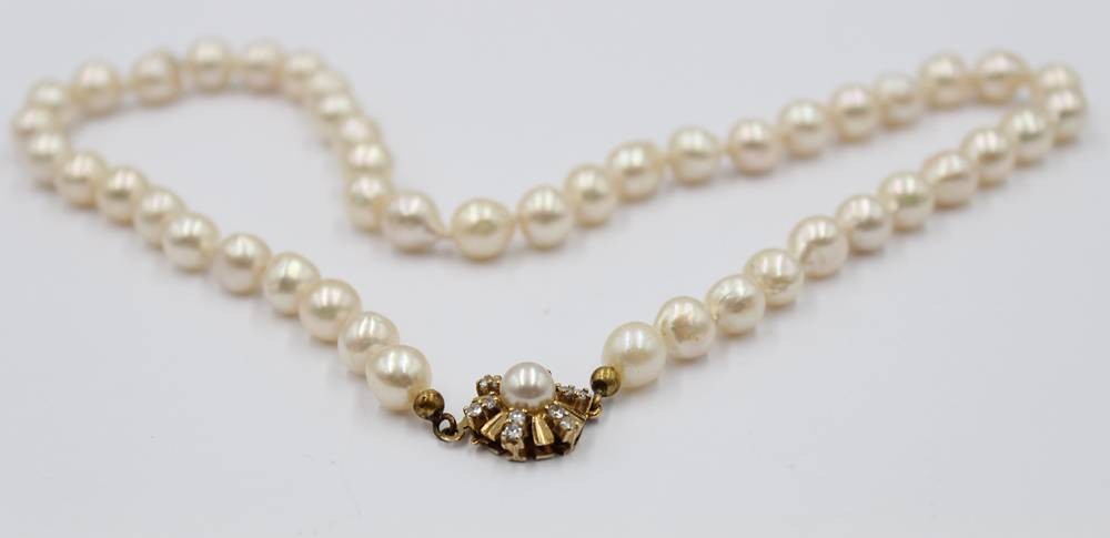 Perlenkette mit 585er GG-Schließe diese mit Brillanten, ca. L-45cm [1]