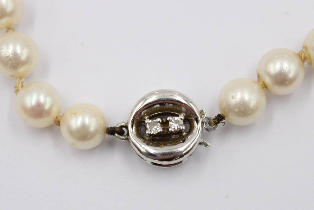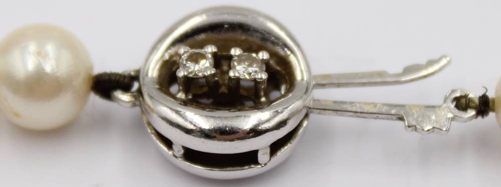 Perlenkette mit 585er WG-Schließe diese mit 2 kl. Brillanten, ca. L-70cm [1]