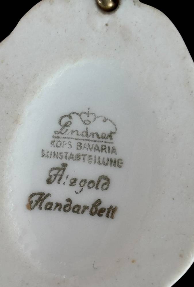 Porzellananhänger "Lindner" Kunstabteilung Küps, Ätzgold, Handarbeit, ca. 5,5x4 cm [1]