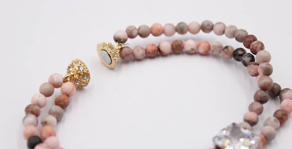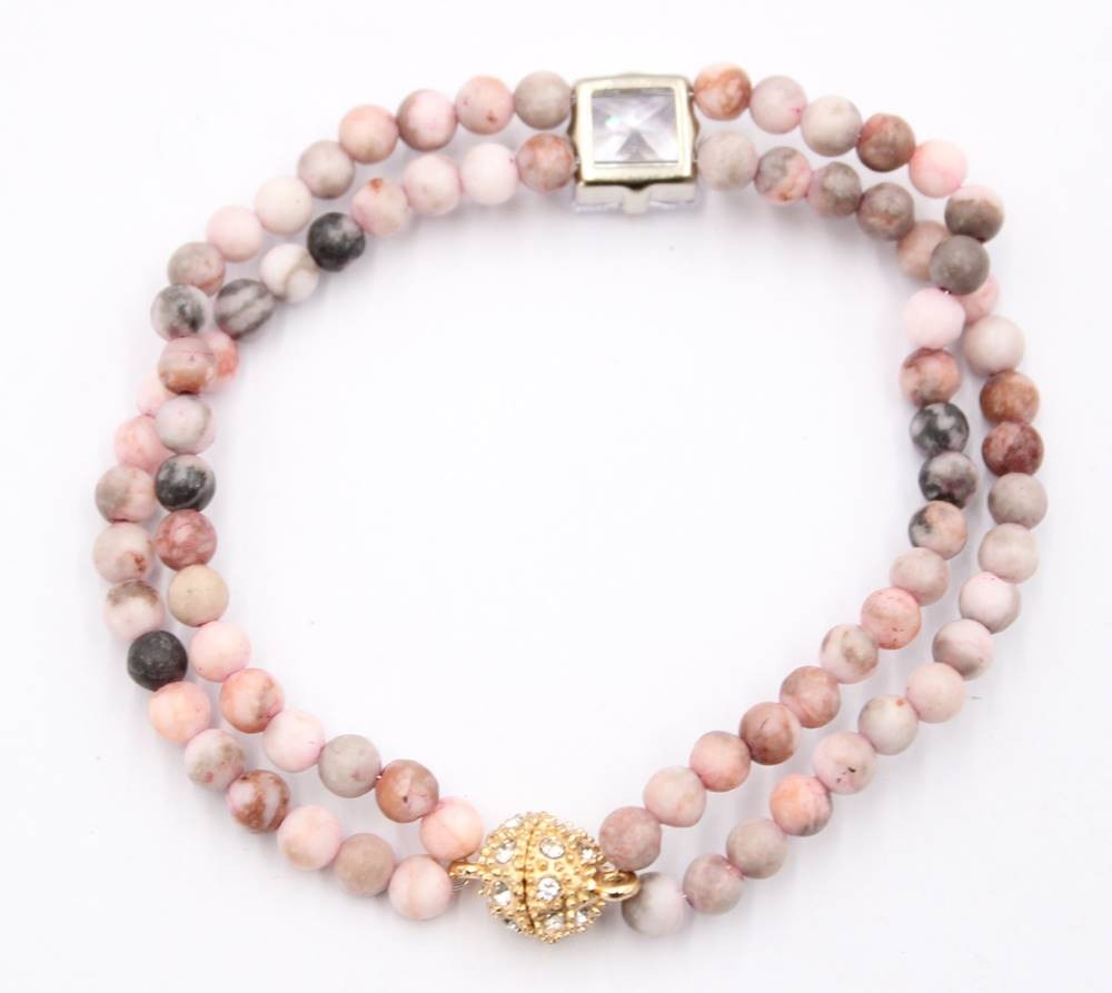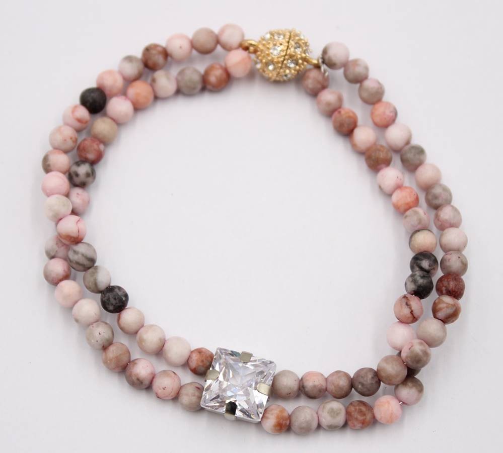 Rhodonit-Armband mit Zirkon, Magnetschließe, ca. L-19,5cm [1]