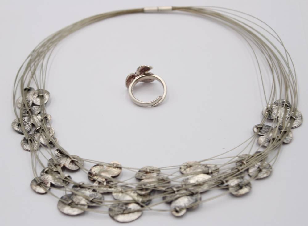 Ries-Set, 925er -Collier sowie passender Ring, Perlenbesatz, Ring mit offener Schiene, zus. ca. 61,4gr., Verschluss wohl defekt, ca. L-45cm [1]
