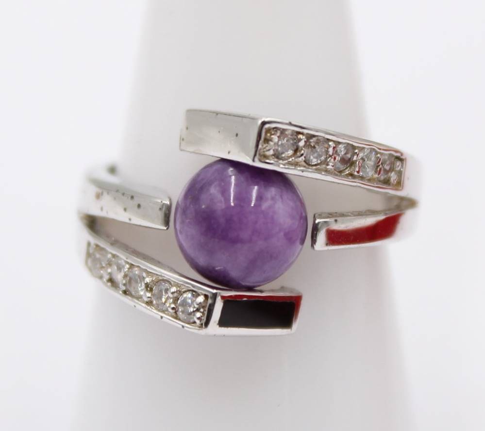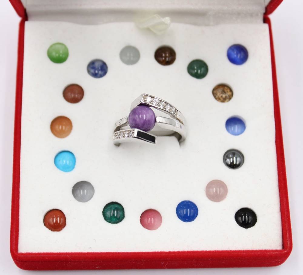 Ring mit austauschbaren Edelstein-Kugeln aus 925 Silber . [1]