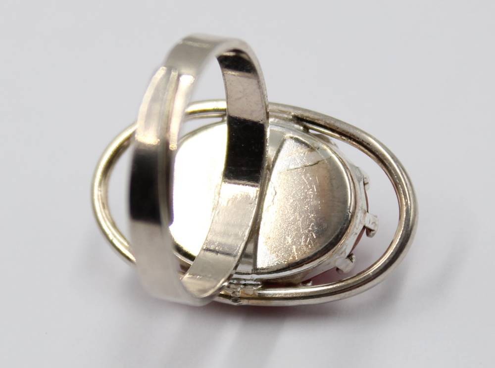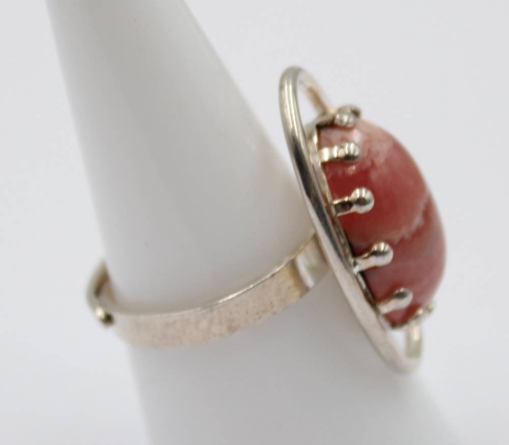 Ring mit einem marmorierten Stein in ovaler Form, Schiene aus 835er Silber, RG60, 6,7 gr. [1]
