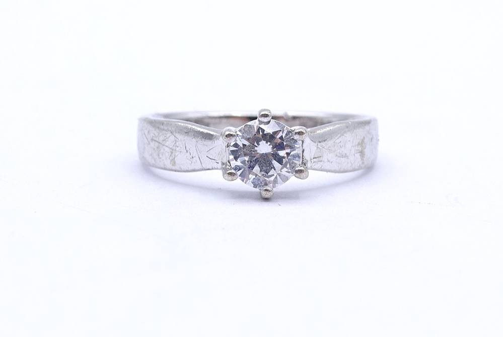 Ring mit einem rund facc. klaren Stein, Sterlingsilber 0.925, 2,9g.RG 54 [1]