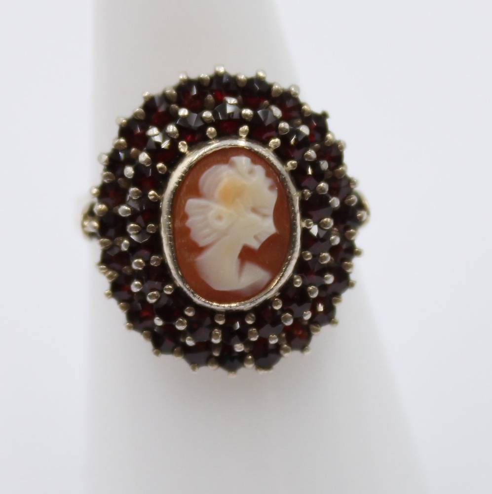 Ring mit Granat und Gemme aus Silber gepr. [1]