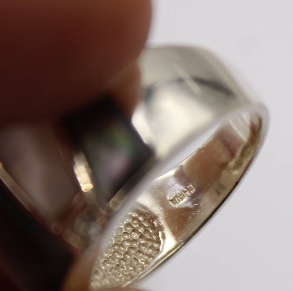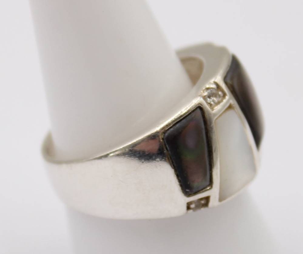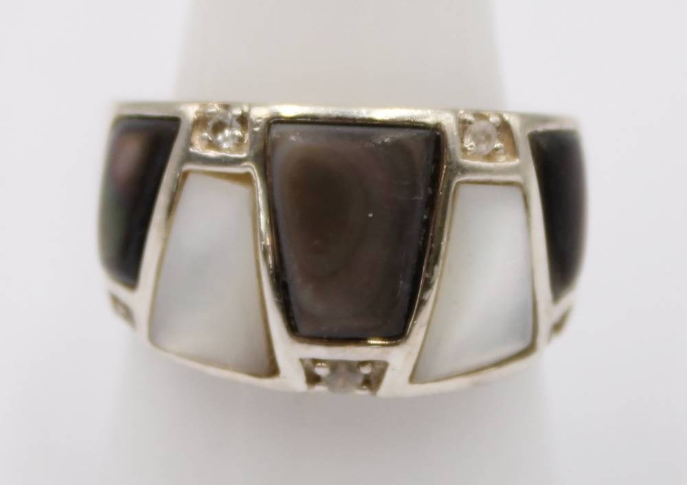 Ring mit Perlmutt und weißen Steinen, 925er Silber, guter Zustand, RG. 60, 10,8 Gramm [1]