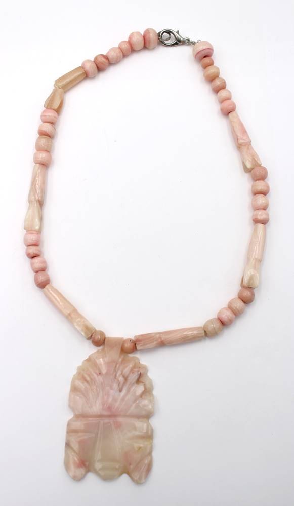 rosa Jade-Collier, Metallschließe, ca. L-46cm, Anhänger L-7,5cm [1]