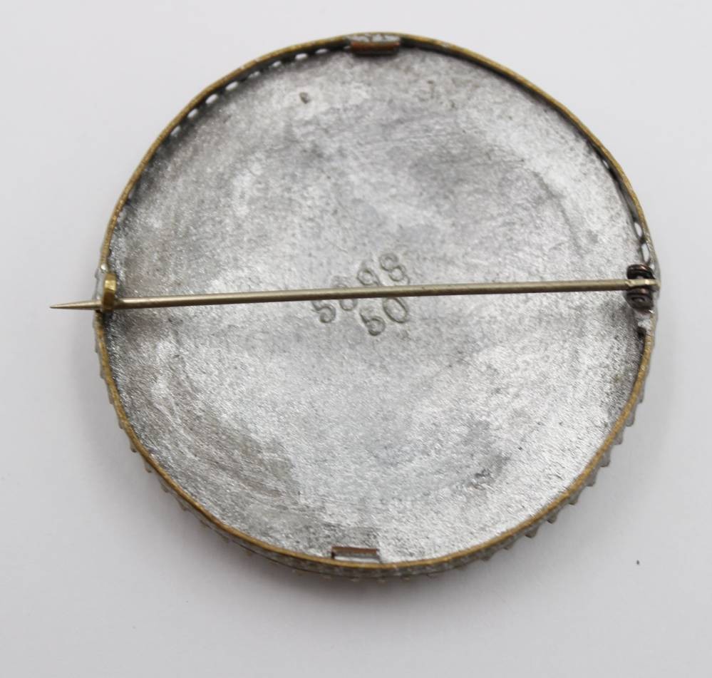 runde Porzellan-Portrait-Brosche, älter, Dame mit Hut, Metallfassung, ca. D-5cm [1]