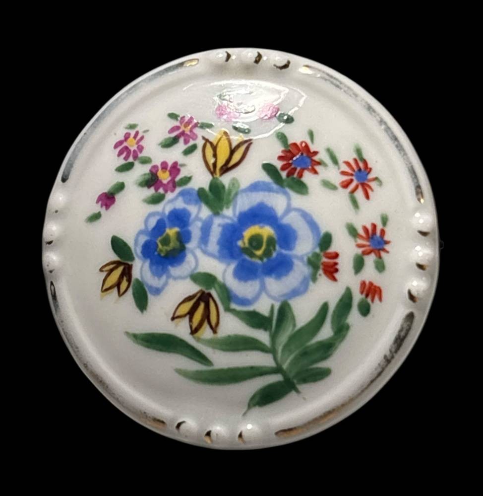 runde Porzellanbrosche "Schumann" Handmalerei, D-4 cm