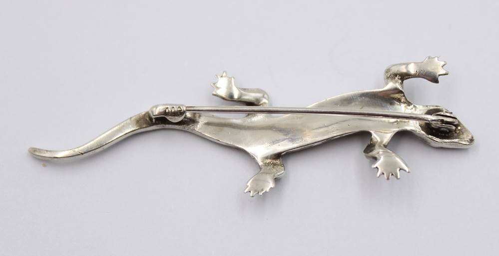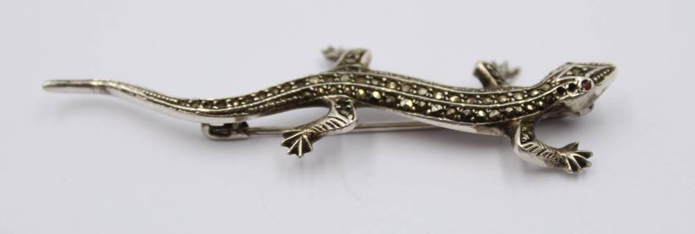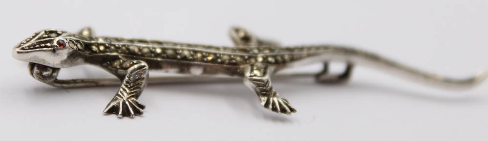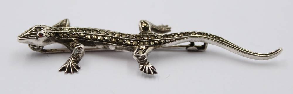 Salamander- Silberbrosche , Rubin Augen und Markasiten (einige fehlen), 800er Silber, 5 gr., L-ca. 6 cm [1]