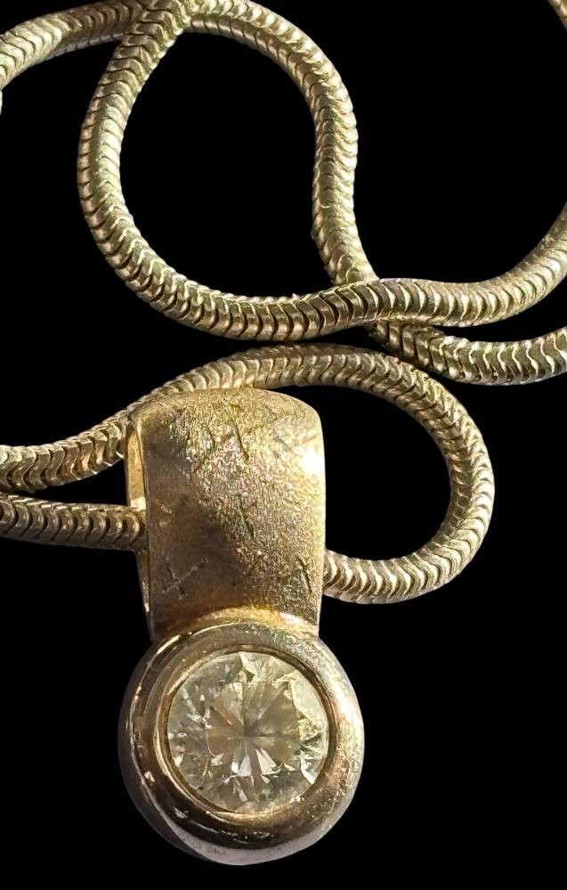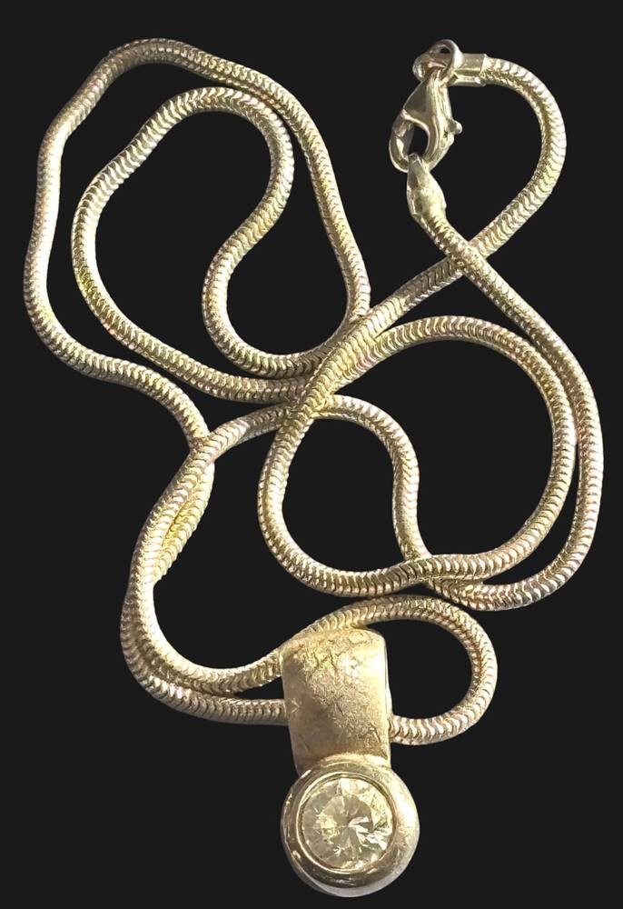 Schlangenhalskette mit Anhänger mit klaren Stein, beide Silber-925-, Kette L-ca. 50 cm, 12,8 gr [1]