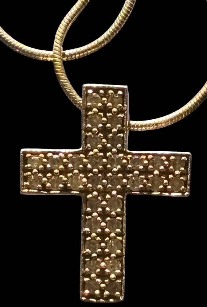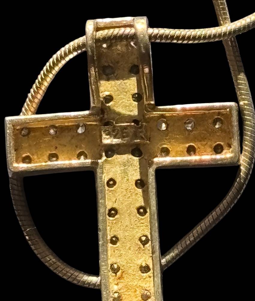 Schlangenhalskette mit Brustkreuz, beide S-925-, L-ca. 48 cm, Kreuz mit klaren Steinen, 3x2,3 cm, 9,2 gr [1]