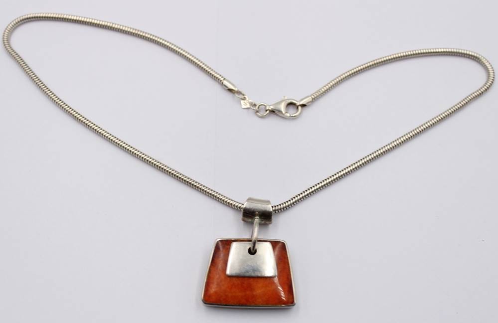 Schlangenhalskette mit Emaille-/Perlmuttanhänger, 925er Silber, zus. ca. 23,3gr., L-40cm, Anh. L-3,5cm [1]