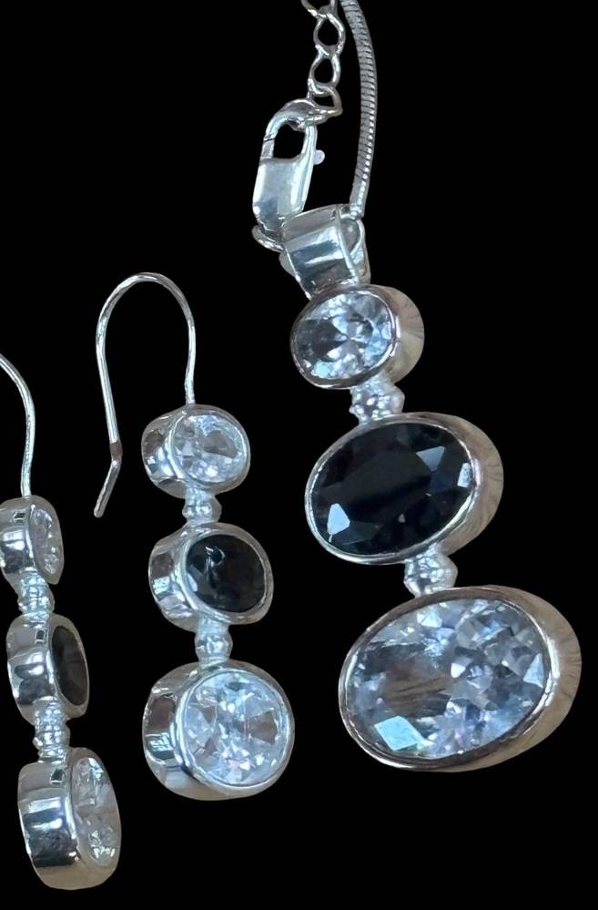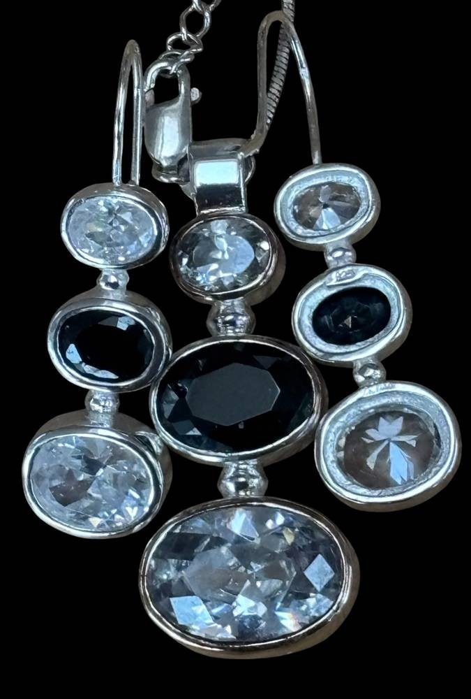 Schlangenhalskette mit gr. Anhänger und passenden Ohrhängern (H-4,2 cm), alles S-925- , 26,2 gr. unleserlich signiert [1]