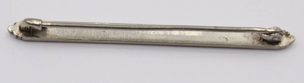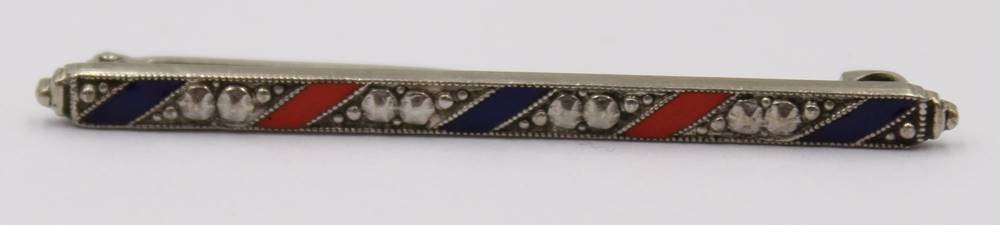 Schmale Brosche mit Emaille, rot und blau, Silber getestet, L. 4,5 cm, 1,9 Gramm [1]