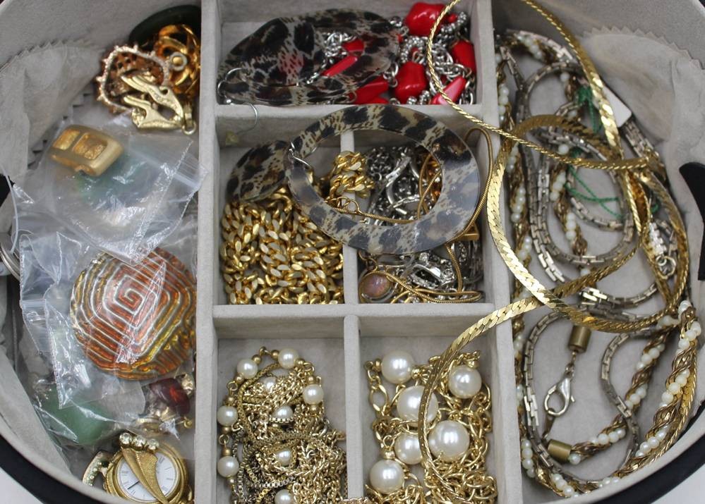 Schmuckkoffer mit div. Modeschmuck, Koffer ca. 9,5 x 23 x 18,5cm [1]