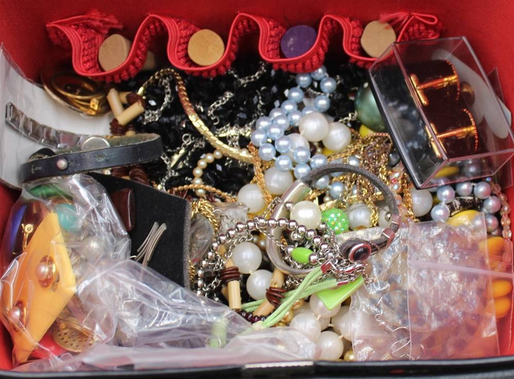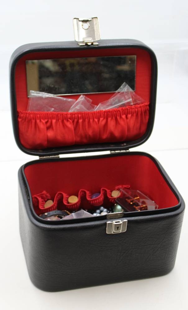 Schmuckkoffer mit einem kleinen Konvolut Modeschmuck, Koffer ca. 16,5 x 24 x 18,5cm [1]