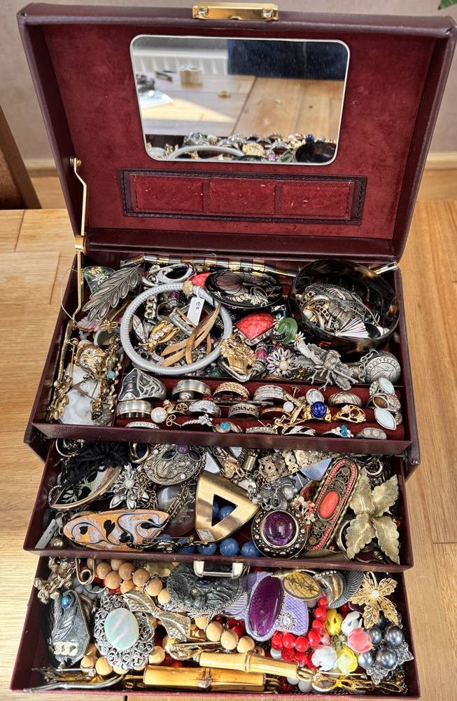 Schmuckkoffer voller Modeschmuck, Schlüssel anbei, H-12 cm, ca. 24x15 cm [1]